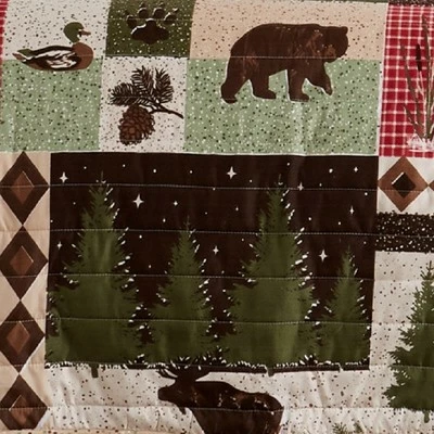 The Wilder Rustic Cabin Quilt Set decorates and enhances any bedroom or guest room with its super soft microfiber material and beautiful lodge printed pattern. This high-quality quilt set is designed for all-season use, which means it will keep you comfortable year round with its lightweight warmth. Itβs machine washable and extremely easy to care for so you can get plenty of great use out of it. Choose from Twin, Full/Queen or King sizes.