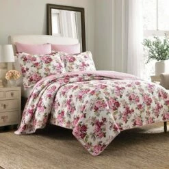The Laura Ashley Lidia Quilt Set is a beautiful way to update your bedroom. The plush quilting and cotton construction combine for supreme softness and comfort, and it reverses to a solid color for two separate looks.