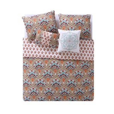 - Includes: 2 Decorative Pillows, 2 Euro Shams, Full/Queen Quilt