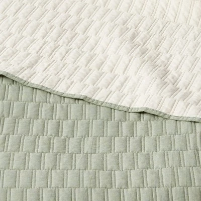 Create a soothing ambiance in your bedroom with the Botanical Dye Quilt from Threshold™. Crafted from 100% cotton with soft filling, this decorative quilt brings an extra layer of coziness to the top of your bed, ensuring you snooze the night away in complete comfort. Featuring a reversible brick-like stitched design in solid hues, this quilt is sure to fill your bedroom with elegant style. The front fabric is colored with dye extracted from plants and flowers, while the back fabric is unbleached and undyed. Pair it with a contrasting comforter and toss in matching or printed pillows to add some character to your sleeping nook.