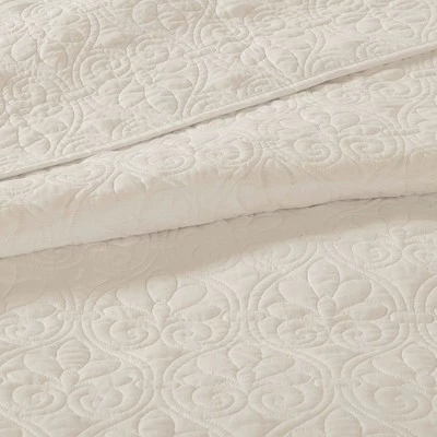 - β’ 3 piece reversible coverlet set with patterned quilting