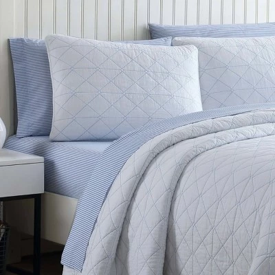 Incredibly soft and inviting, the Kelsey quilt set from Poppy & Fritz is perfect for layering or using on its own. Featuring a white ground with light blue stitching. This quilt set is the perfect addition to any room. Quilt is lightweight with a super soft feel. Machine washable for easy care.