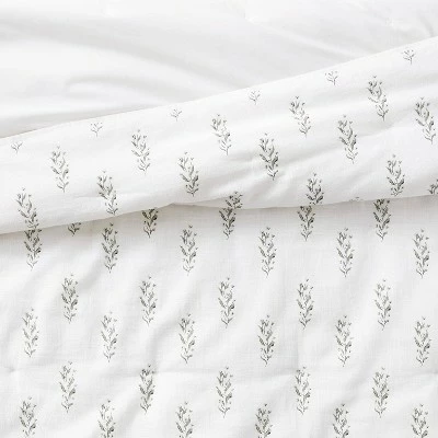 Add graceful style to your sleep space with this Lofty Cotton Slub Wood Block Floral Quilt from Threshold™ designed with Studio McGee. This white slub quilt printed with a slate gray wood block floral pattern brings charming appeal to your bedding. It features a lofty quilted construction to lend a soft and cozy touch to the top of your bed. This midweight cotton quilt offers comfortable year-round use, and is machine washable for easy care. Pair with matching shams and a sheet to coordinate your bedding ensemble.