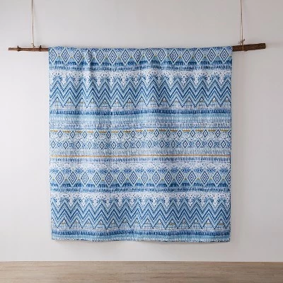 The Aquataine Reversible Twin Quilt Set by Levtex Home is inspired by tie-dye techniques and patterns. Offered in shades of blue, gold and cream, this design will immediately transform your bedroom. Made with the softest lightweight cotton, this reversible quilt features an overall stripe created from tie dye elements on the one side, reversing to a blue medallion on the other. The Twin Quilt Set has a cotton rich filler (90% cotton, 7% rayon, 3% other fibers) and is machine washable and includes the quilt (68x86in.) and one standard pillow sham (26x20in.) Enjoy this for years to come!