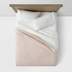Transform your bedscape into a restful retreat with the Embroidered Chambray Quilt from Threshold™. Crafted from 100% cotton fabric with a luxurious fill, this embroidered quilt lets you snuggle up in comfort while adding a touch of texture and color to your space. Showcasing striped embroidered detailing with a quilted backdrop for a lovely look, you can simply pair this quilt with matching shams for a cohesive feel, or mix it up for a look that’s all you.