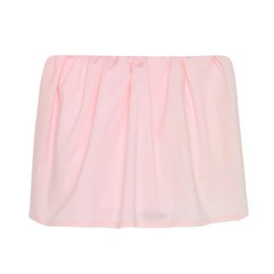- The solid pink crib skirt is shirred for a more luxury/designer style