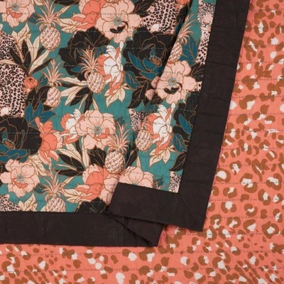 The Teresa Chan for Makers Collective tropical, Leopard Hero Quilt set was dramatically inspired by Teresaβs recent trip to South Asia. The pattern features a wildly fun mix of florals, pineapples, and stealth leopards. Made of 100% cotton fabric and fill, it will bring a bold, luxurious, and elegant look to your bedroom.