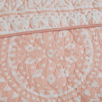 Invite eye-catching, modern style to your bedroom with the Mica 7 Piece Cotton Reversible Coverlet Set. An oversized medallion with hand-drawn geometric details is displayed on the cotton base. The reverse flips the color scheme with a geometric print, creating a two distinct looks for your bed. Two shams mirror the design seen on the reverse of the coverlet, while two quilted Euro shams add texture to the bedding set. A square decorative pillow with fabric manipulation and an embroidered oblong pillow complete the coverlet set. Machine washable for easy care, this bedding set is OEKO-TEX certified, meaning it does not contain any harmful substances or chemicals, ensuring quality comfort and wellness.