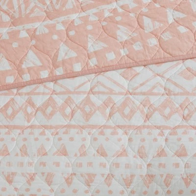 - β’ Oversized medallion print at the center of the coverlet reverses to a geo print