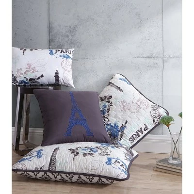 Add a layer of liveliness to your bedroom with the Cherie Quilt Set 5pc. Made of polyester with fluffy fill for extra comfort, it includes a king quilt, 2 king shams and 2 decorative pillows. It features a beautiful print the Paris city and with wording such as Love. Snuggle in this warm comfy bedding set and sleep tight.