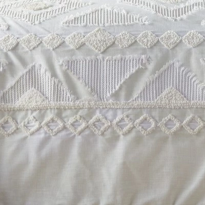 - THE HARLESON DESIGN: One of our most popular sets, Harleson is hip, dimensional and contemporary. The front is a tufted and frayed cream tribal pattern on white and the reverse is solid cream 100% cotton. The comforter is filled with soft, hypoallergenic 100% polyester.