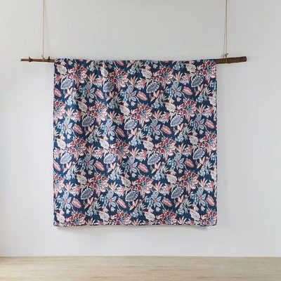 The Isadora Reversible Quilt Set by Levtex Home is inspired by the beautiful scarves of south-east Asia. This floral design will immediately transform your bedroom. Made with the softest lightweight cotton, this reversible quilt features a a large scale floral pattern in a batick style, reversing to a a tear drop block print inspired pattern in blue and red on white on the other. The Quilt Set is machine washable and includes the quilt and standard pillow shams. Enjoy this for years to come!