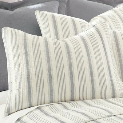 The Rochelle Quilt Set by Levtex Home is inspired by classic French menswear stripes. This stripe quilt design will immediately transform your bedroom. Made with the softest lightweight cotton, this reversible quilt features a navy and cream variegated stripe, reversing to itself.