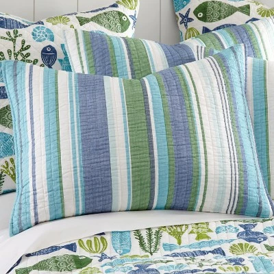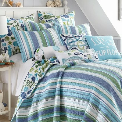 - COORDINATE YOUR ROOM DECOR: Create a wonderful bedroom space with our coordinated reversible matching bed set. The teal, blue, green and cream design brings fun coastal vibes into your home and will match a variety of different looks and bedroom decor. You can also freshen your room with other items from the Levtex Home collection.
