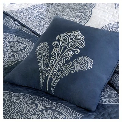 The Audra Reversible Coverlet Set brings an updated feel to your current decor. Its backdrop allows the white medallions to pop off of the top of bed. This coverlet and shams are fully reversible offering the flexibility to update your current decor or use this coverlet as a layering piece with your current bedding. Three decorative pillows use fabric manipulation and embroidery for the perfect finishing touches to this collection.