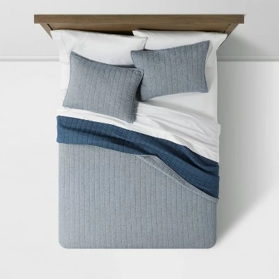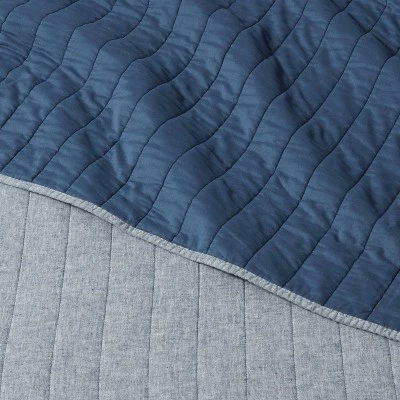 Add style and comfort to your bedding ensemble with this Chambray Linen Blend Quilt from Threshold™. Crafted from a cotton/linen-blend fabric, this chambray quilt wraps you in cozy comfort night after night, while the stripe-stitched quilted pattern gives your room an elegant touch. The simple design pairs perfectly with a variety of decor styles, so you can toss this cotton-filled quilt on your bed to create a perfect spot for relaxing and sleeping. Simply mix and match this cotton-blend quilt with your own sheets and pillows for a quick decor transformation you’re sure to love.