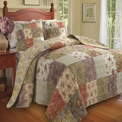 Set includes: Bedspread and two pillow shams (one sham per twin set). Dimensions: Twin set includes one 81×110″ bedspread and one 20×26″ pillow sham; Full set includes one 96×110″ bedspread and two 20×26″ pillow shams. Queen set includes one 110×118″ bedspread and two 20×26″ pillow shams; King set includes one 120×118″ bedspread and two 20×36″ pillow shams. 100% Cotton face, back and fill. Prewashed and preshrunk, Machine washable. Oversized for better coverage on todays deeper mattresses.