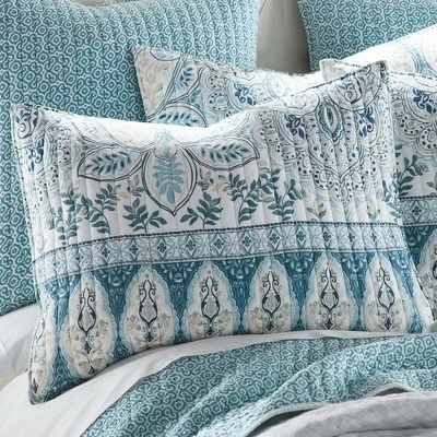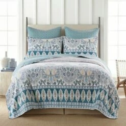 The Wentworth Reversible Twin Quilt Set by Levtex Home is inspired by delicate murals. This beautiful blue design will immediately transform your bedroom. Made with the softest lightweight cotton, this reversible quilt features a beautiful intricate paisley pattern on the bottom of the quilt with a soft grey leaf-pattern ground, reversing to a teal medallions on the other. The Twin Quilt Set is machine washable and includes the quilt and matching pillow shams. Enjoy this for years to come!