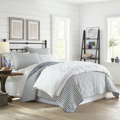 Add the perfect dose of maturity to your bedroom with the Willow way quilt set from Stone Cottage. With its banded navy and ivory striped design and elegant diamond quilting, this set is subtly eye catching and will match a wide array of decor styles. Constructed with pre-washed 100% cotton material, the quilt and coordinating shams are ultra soft and cozy, and conveniently machine washable. Set is available in Full/Queen: 90″L x 90″W quilt, Two 21″L X 27″W standard shams and King 96″ L X 104″W, Two 37″W x 21″L King shams.