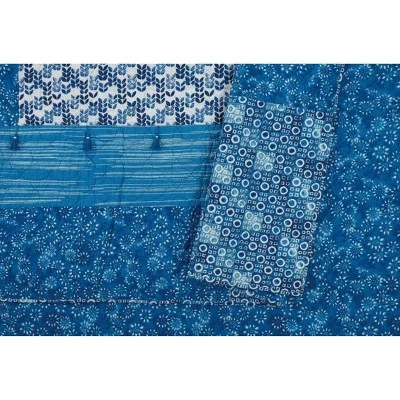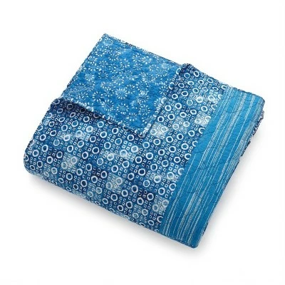 The Jessica Simpson Azra Quilt is made of pieced cotton fabrics in coordinating patterns all printed with block print inspired motifs in shades of indigo blue for a perfectly zen bedroom look. Indigo blue tassels finish off the look. Made of 100% cotton with cotton fill. Matching shams sold separately. Machine wash in cold water. Gentle cycle. Do not use bleach. Tumble dry low. Use large capacity machine as needed.